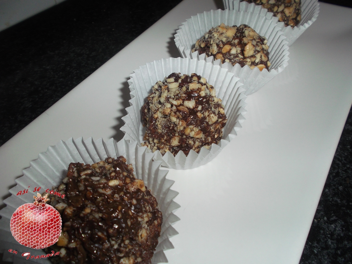 - Se espera que temple un poco para que no derrita las bolas sin que nos de tiempo a darle forma. Mientras se trituran las avellanas dejándole trozos medianos que se vean bien.